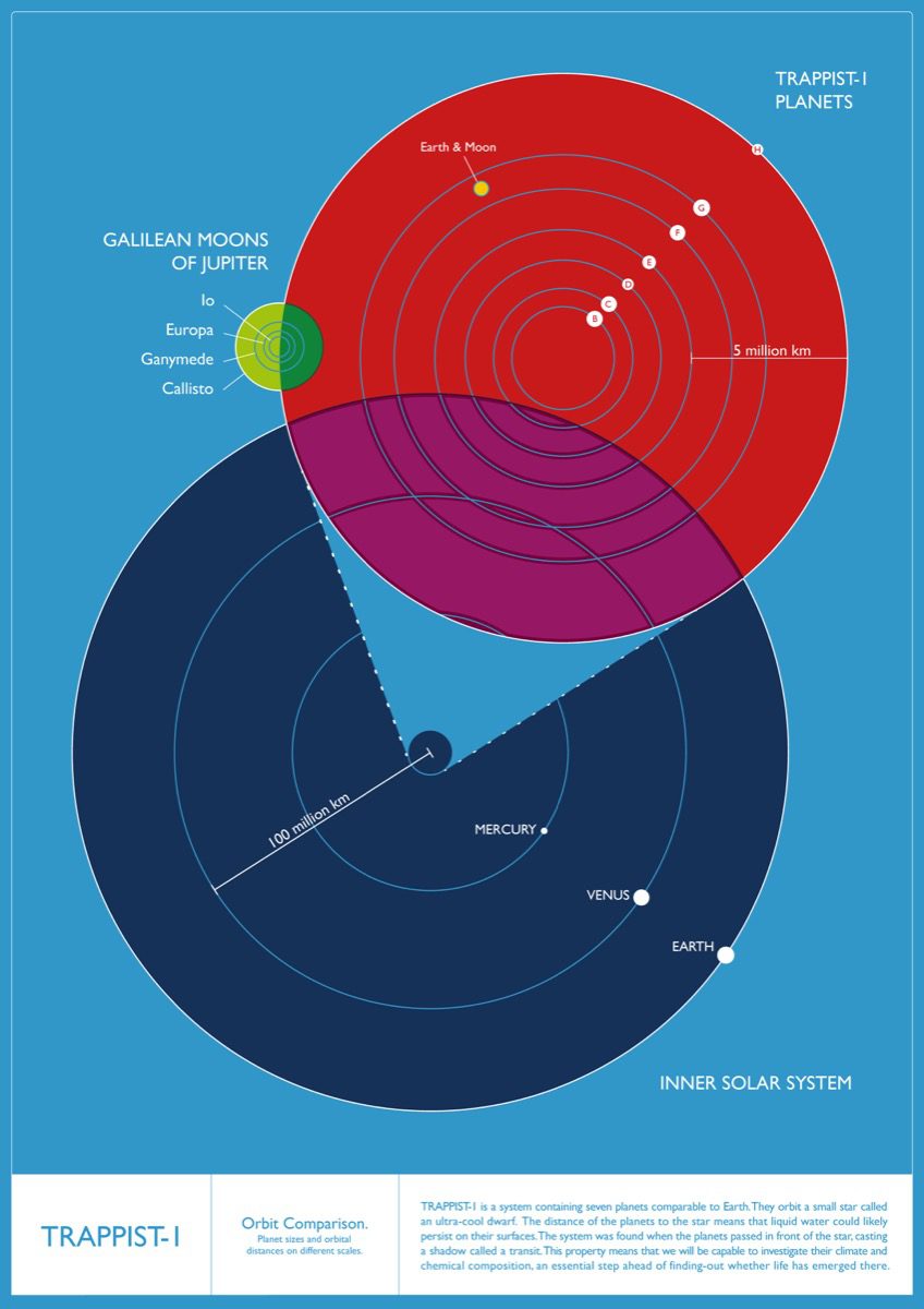 A l’occasion de la découverte des 7 exoplanètes, un site dédié à l’étoile TRAPPIST-1 a été créé. On y retrouve des infographies, des vidéos, des explications, l’historique de cette découverte, ainsi que l’interprétation artistique de TRAPPIST-1 par l’artiste Amanda J.Smith. Une affiche de tourisme épique a été diffusée pour marquer le coup.
